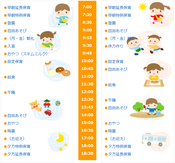 子どもたちにとっての「あそび」の必要性・重要性から成長を育んでいきます。 現在の子どもたちを取り巻く社会環境の変貌には著しいものがありますが、この社会を 生きていく上でも、乳幼児期からの人間育成は、極めて重要な基礎段階です。生活習慣を 身に付けながらも、個性を尊重していかなければ人間として発達しません。 せめて、保育園で育つ時期だけでも、伸び伸びとあそび、心身ともにたくましく育み、 将来に個々の無限に秘めた可能性を引き出せる素因となる場でありたい、と願うわけです。 また、初めての集団生活の体験を通じて、人と人とのふれあい、思いやりをもった人間育成 を、保育園と家庭、地域の連携で培っていきます。 従って、なるべく子どもの邪魔をせずに、自然に生活習慣も身に付けていく保育指導の 在り方でありたいと考えています。「養護」と「教育」のくぜみなみです。
